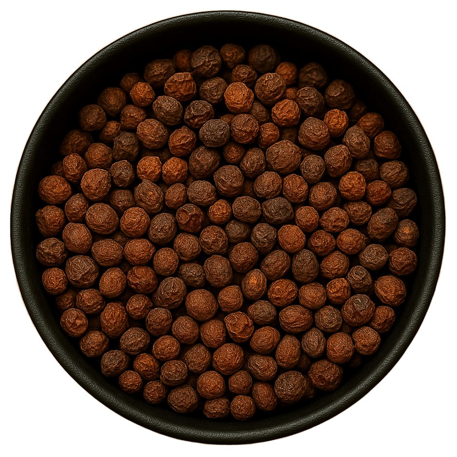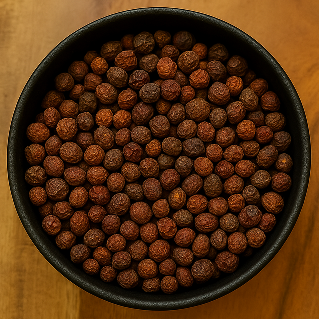 Galangal Fruit Whole (Alpinia galanga) is the dried fruit of the galangal plant, a warm, aromatic member of the ginger family long valued in Traditional Chinese Medicine (TCM), Ayurveda, and Southeast Asian herbal traditions. Known for its sharp fragrance and penetrating warmth, the fruit is used to dispel cold, awaken digestion, relieve stagnation, and invigorate circulation. In TCM, galangal fruit is considered acrid, warm, and stimulating, entering the Spleen and Stomach channels to revive the middle burner, ease epigastric discomfort, and counter cold-induced digestive sluggishness. It is traditionally used for bloating, cold stomach pain, nausea, and poor appetite, as well as for dissipating phlegm and promoting smoother qi movement through the chest and abdomen.