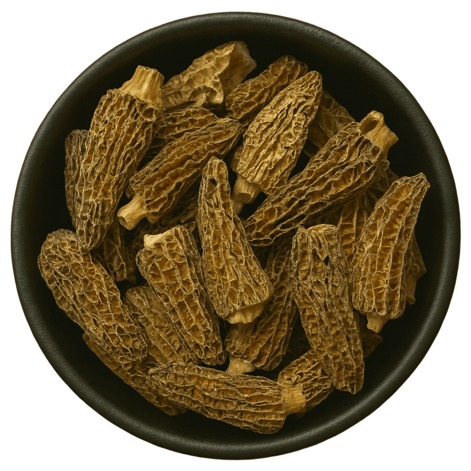 In culinary traditions, morel mushrooms are considered a delicacy, known for their deep umami taste that enhances soups, sauces, and stir-fries. When rehydrated, they regain their tender texture and impart a savory depth to broths and stews. In traditional herbal medicine, Morchella esculenta is valued as a tonic food believed to support digestion, nourish the lungs, and strengthen overall vitality.