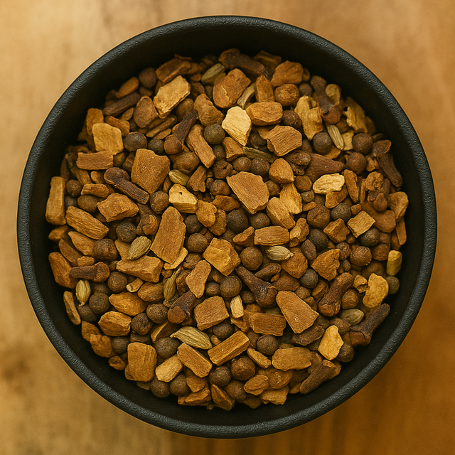 Notes: This caffeine-free Chai Masala Tea blend combines the warming, antimicrobial properties of cinnamon, cardamom, ginger, and black pepper, often used as a soothing tea to support digestion, enhance circulation, and reduce inflammation. The spices create a robust, spicy-sweet flavor profile, making it ideal for a comforting, caffeine-free beverage that can be enjoyed on its own or with milk and a sweetener. It’s perfect for supporting overall wellness, especially during colder months.