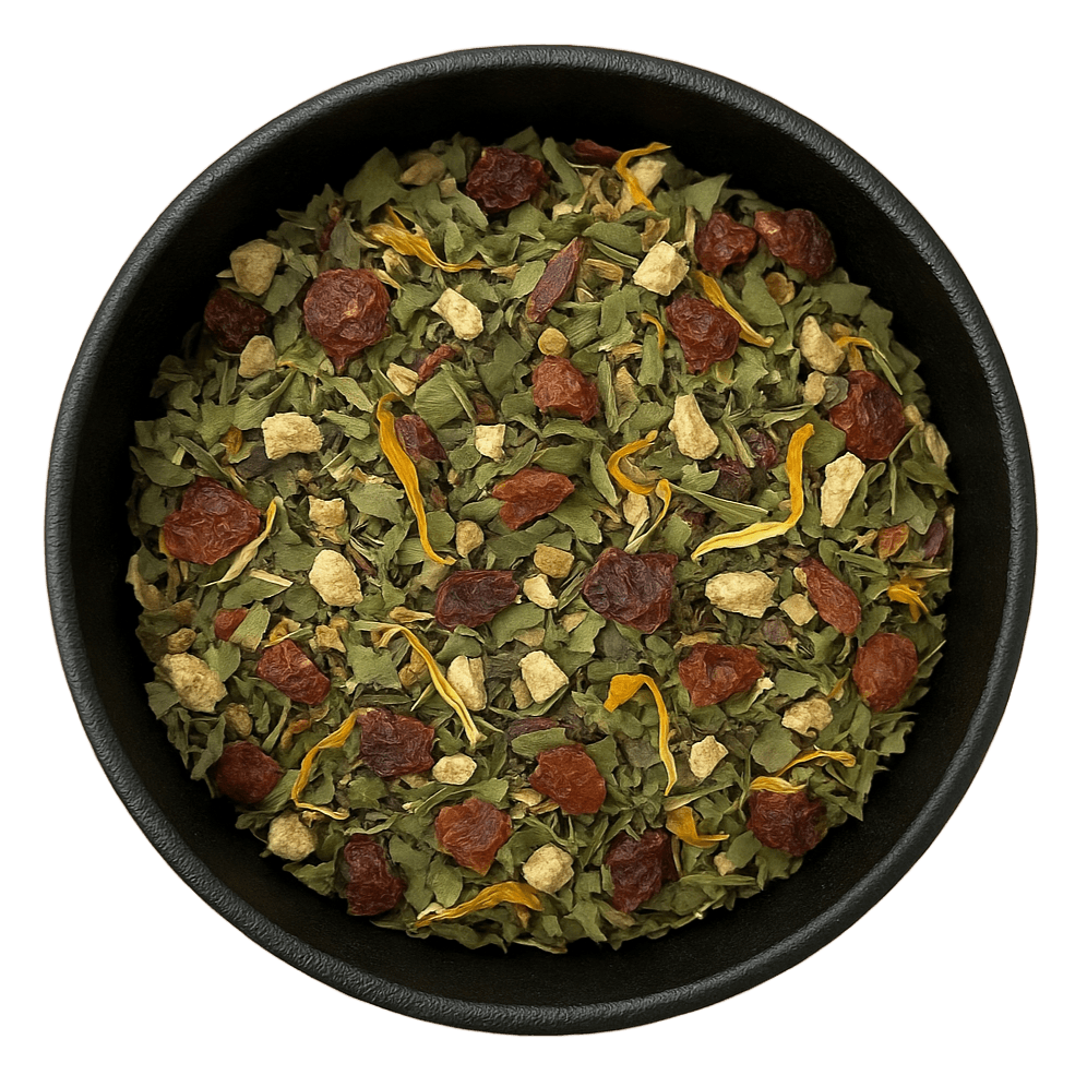 - Flavor: Cool and minty with warming ginger, subtle sweetness from rose hips and anise seed, and a gentle herbal finish.
