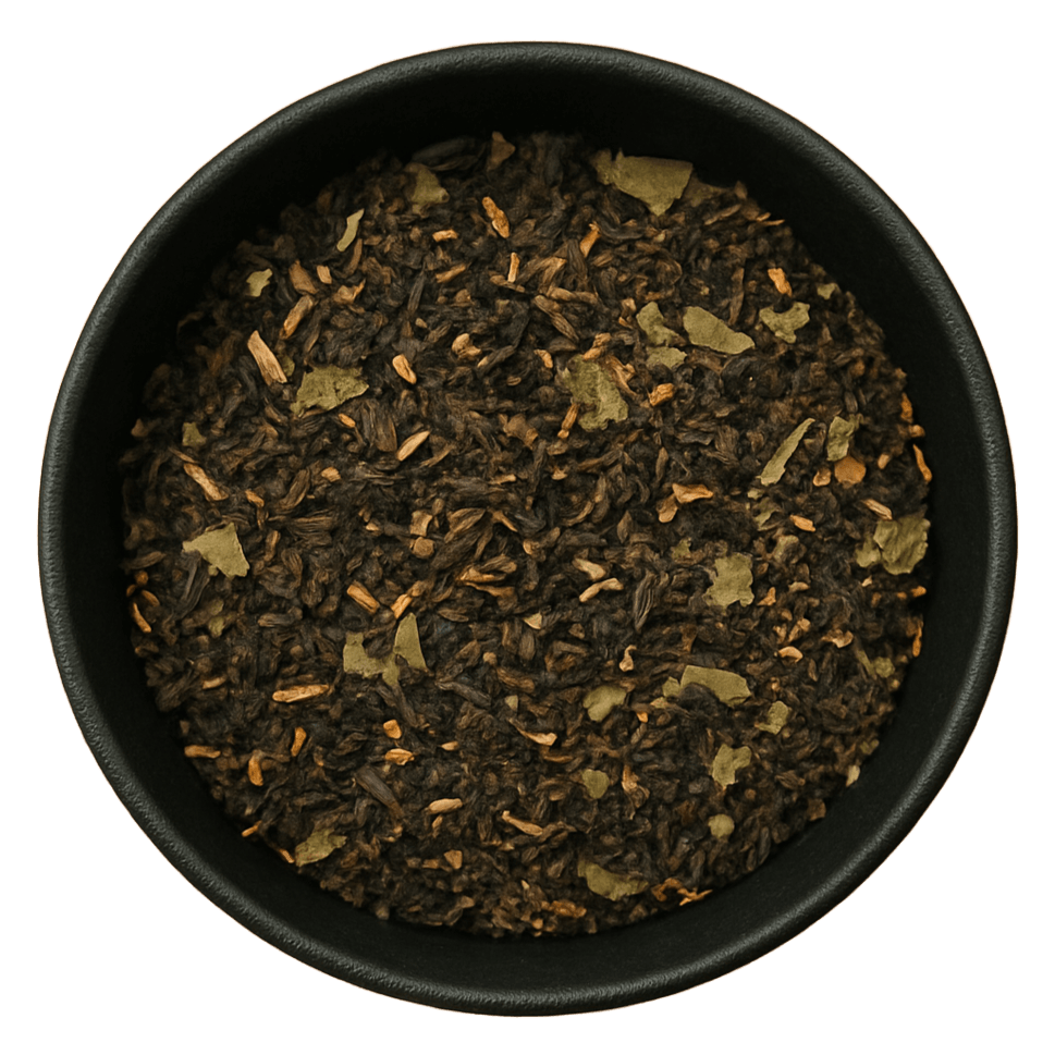 - Black Tea (Camellia sinensis): Full-bodied and robust, providing the perfect foundation.