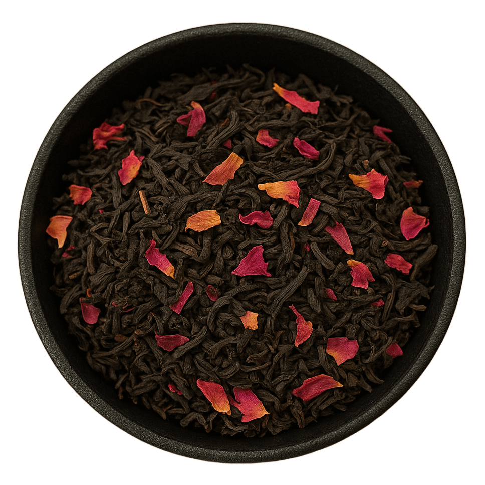 The base of this blend, Congou black tea, is a carefully hand-processed variety known for its smooth, mellow character and slightly malty undertones. The addition of rose petals enhances the tea’s complexity, lending a soft, floral fragrance and a naturally sweet, slightly perfumed finish. This combination creates a well-balanced cup that is both bold and refined, making it an exquisite choice for those who appreciate a sophisticated black tea with a romantic touch.