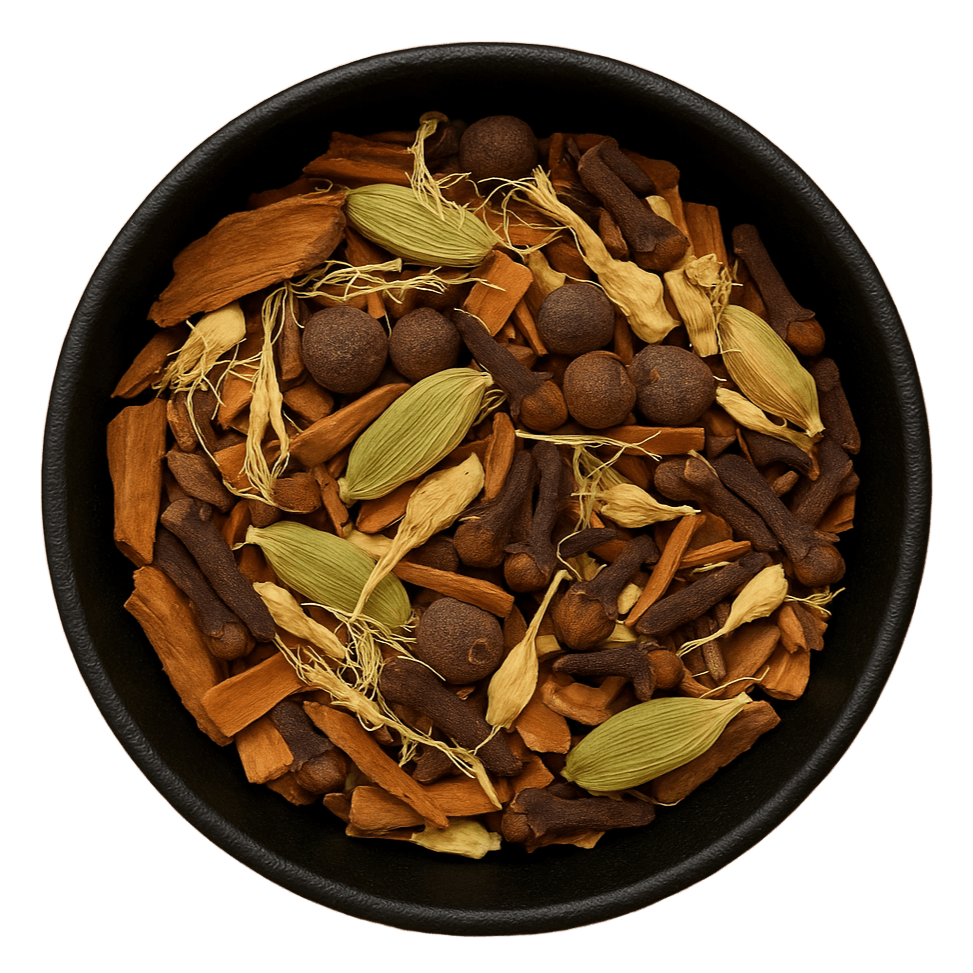 Also Known As: Cinnamon, Ginger, Green Cardamom Pods, Coriander, Black Tea, Allspice, Cloves, Black Pepper