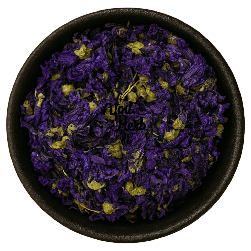 Notes: Traditionally used in European and Mediterranean herbalism as a soothing demulcent for the throat, lungs, and digestive tract. Also applied topically for skin irritation. In teas, it imparts a bluish-purple tint and mild flavor. Safe and gentle, commonly used as both a medicinal and decorative herb.
