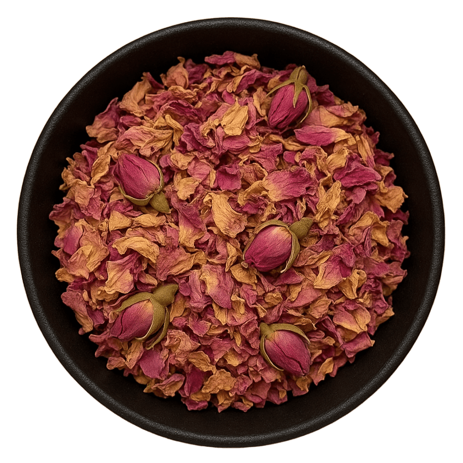 Traditionally, rose buds and petals have been cherished for their calming, heart-opening, and antioxidant-rich properties. They are widely used in herbal teas, potpourri, bath blends, and skincare formulations for their soothing and uplifting effects. Their light, floral taste makes them a popular addition to tea blends, syrups, desserts, and infused honey.