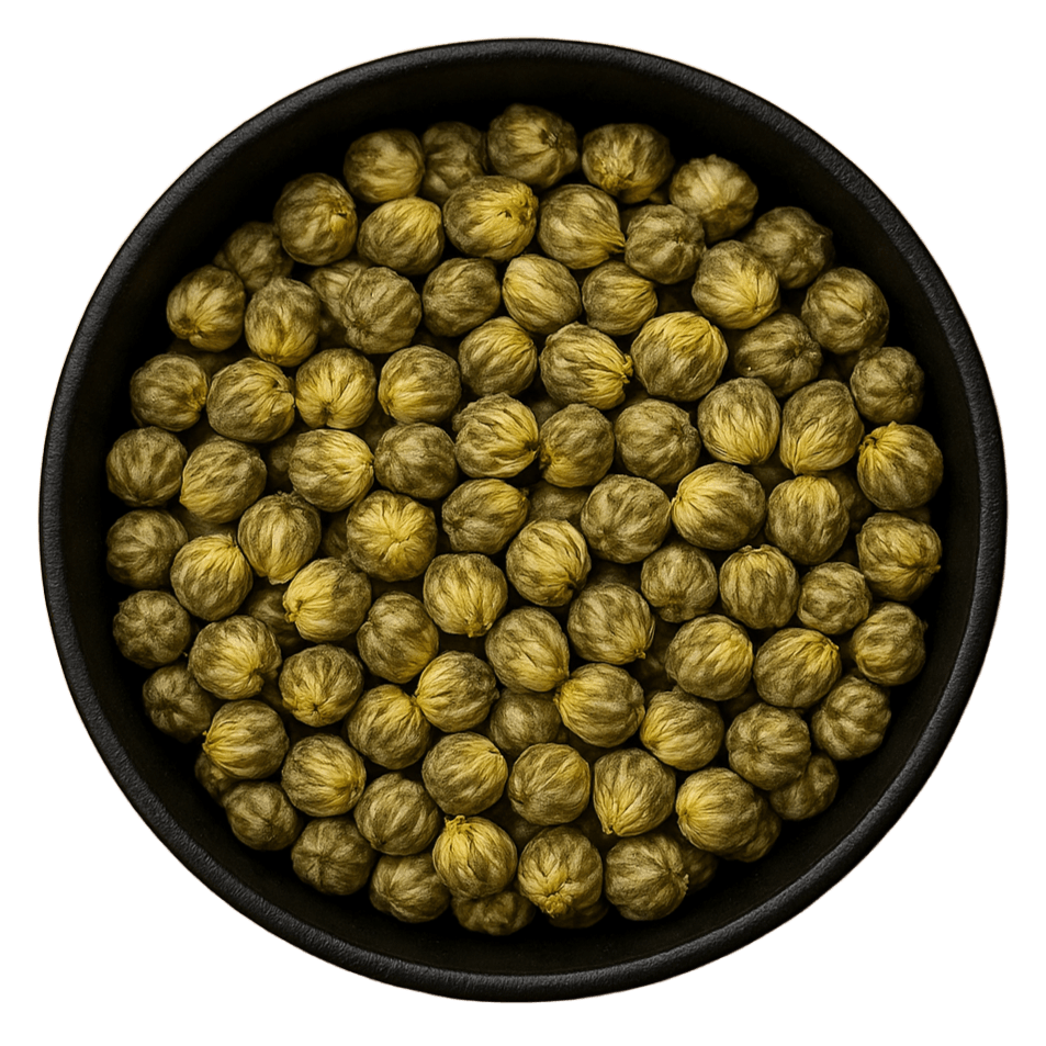 Yellow Chrysanthemum Flower Bud Whole, carefully harvested from the Chrysanthemum morifolium plant before it fully blooms, is a delicate yet potent botanical cherished in traditional herbal practices. These unopened, dried flower buds capture the plant’s most vibrant essence, offering a concentrated source of its soothing aroma, gentle flavor, and time-honored health benefits.