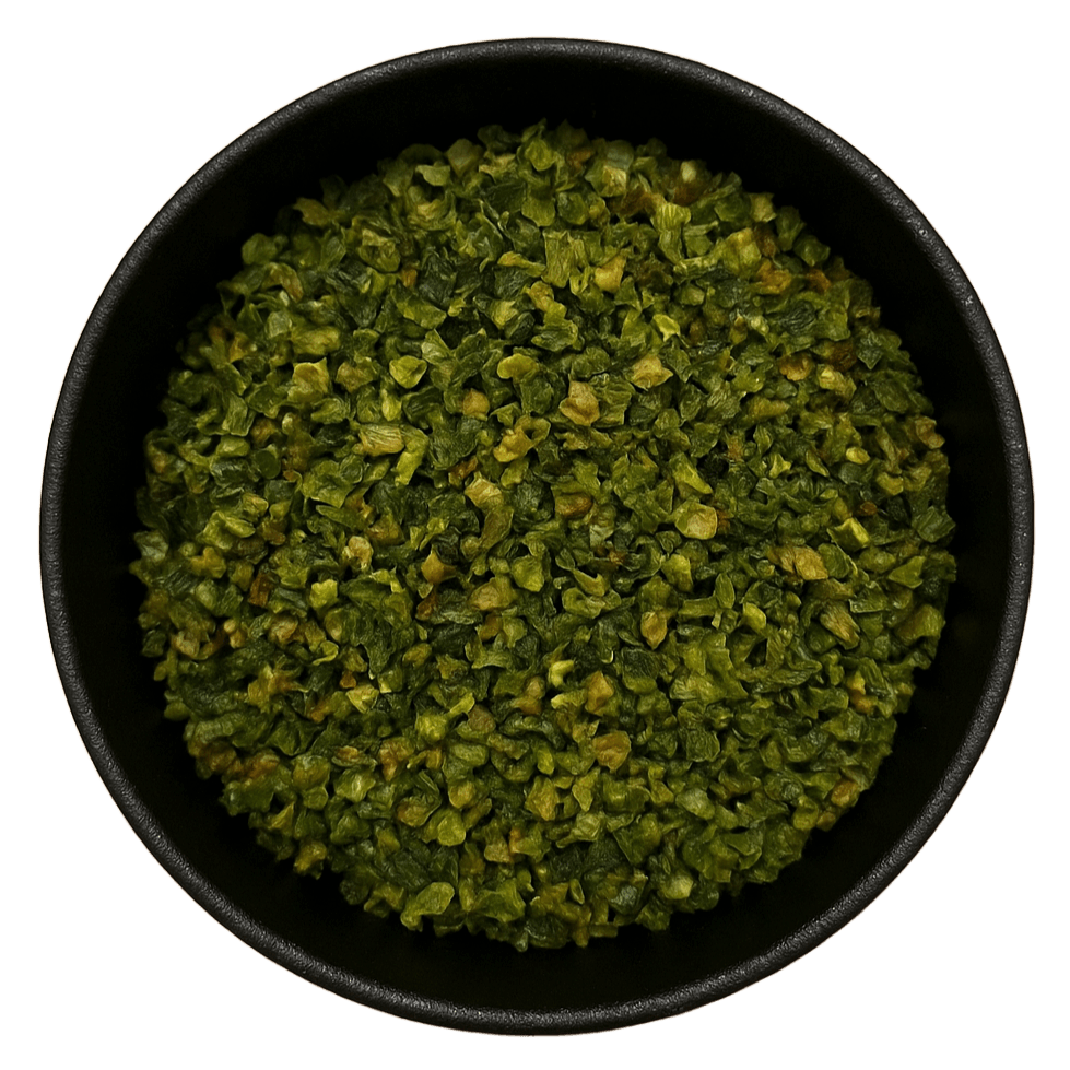 Celebrated for their role in global cuisines, Green Bell Peppers add a fresh, vegetable-forward note to any dish. They can be rehydrated for use in cooked recipes or enjoyed as a seasoning for added texture and flavor.