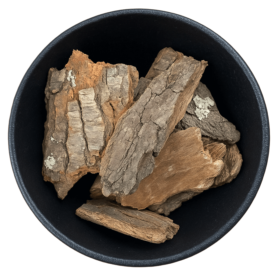 Notes: Whole wild cherry bark (Prunus serotina) is valued for its calming and expectorant properties, often used in decoctions or extracts to ease respiratory issues, reduce inflammation, and promote sleep. It has a subtle, sweet-almond taste and should be used sparingly to avoid risks from cyanogenic glycosides.