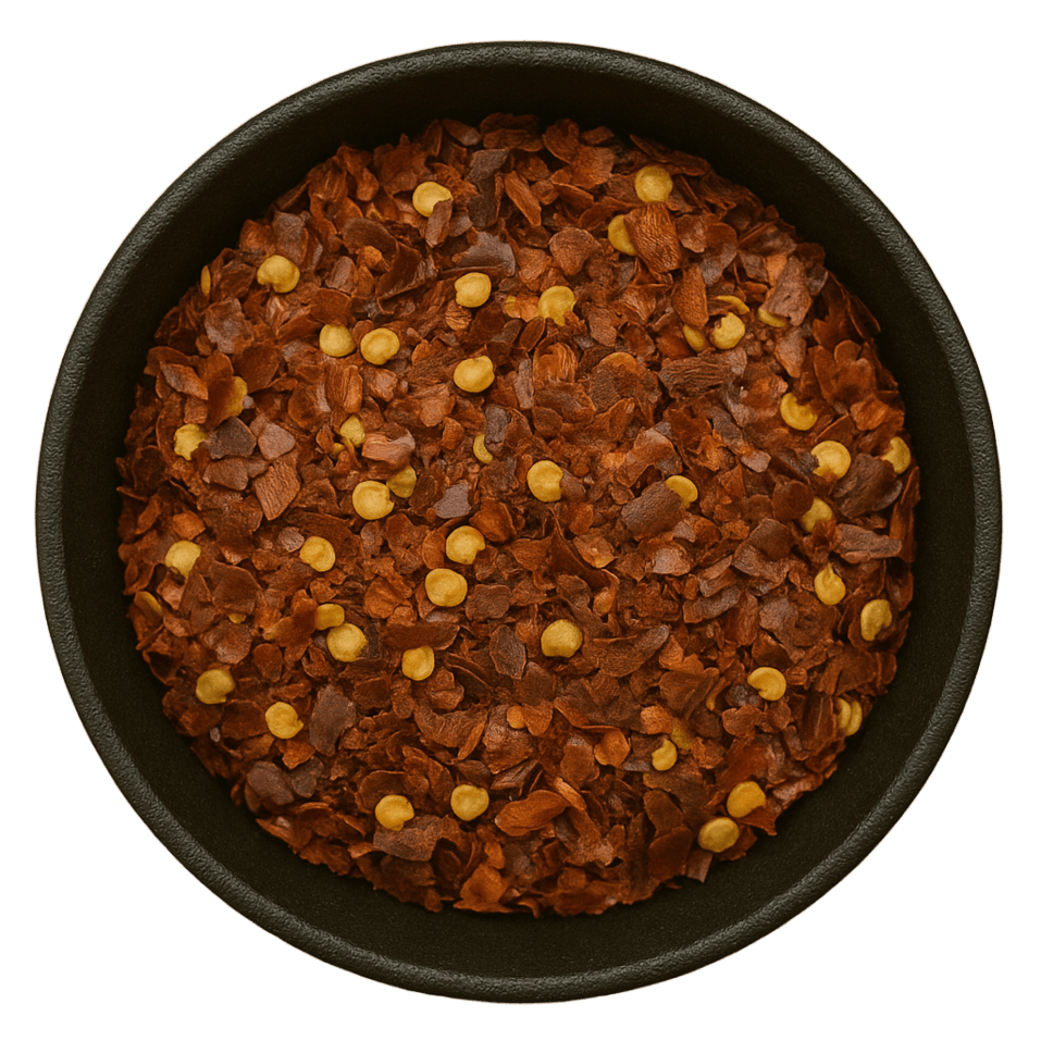 Notes: Crushed chili peppers (Capsicum annuum) provide heat from capsaicin, along with antioxidants like vitamin C and carotenoids; heat level varies depending on the variety.